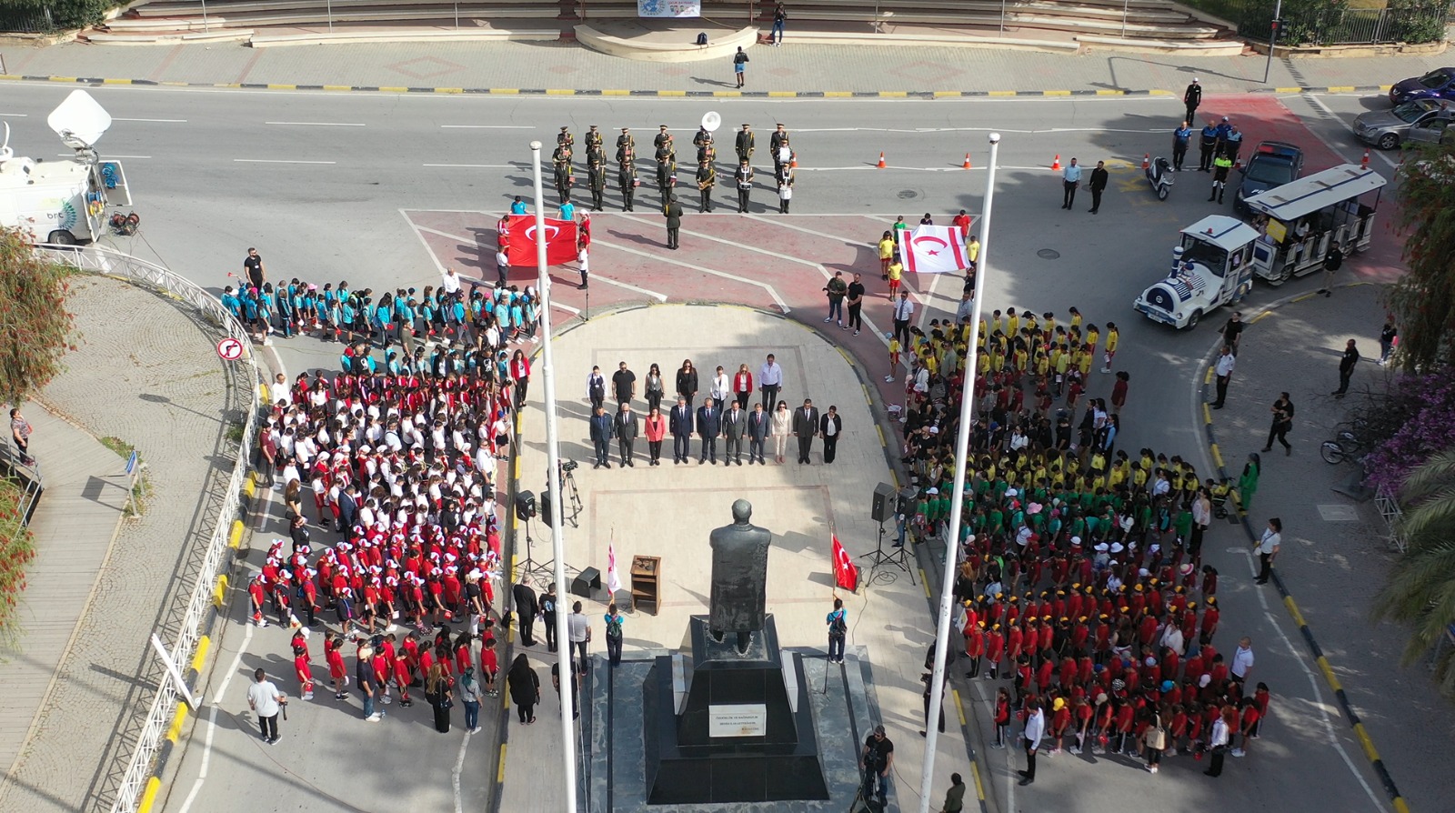 Lefkoşa bölgesinde yer alan ilkokul öğrencilerinin katılımıyla yapılan kortej yürüyüşü, Atatürk Anıtı, Cumhurbaşkanlığı ve Cumhuriyet Meclisi güzergahında düzenlendi. Bandonun da eşlik ettiği yürüyüşe, Milli Eğitim Bakanı Nazım Çavuşoğlu, Tarım Bakanı Hüseyin Çavuş ve bakanlık bürokratları da katıldı.