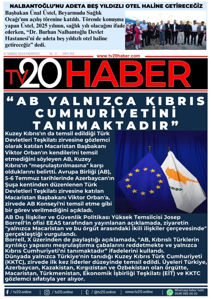 Kuzey Kıbrıs’ın da temsil edildiği Türk Devletleri Teşkilatı zirvesine gözlemci olarak katılan Macaristan Başbakanı Viktor Orban’ın kendilerini temsil etmediğini söyleyen AB, Kuzey Kıbrıs’ın “meşrulaştırılmasına” karşı olduklarını belirtti. Avrupa Birliği (AB), 5-6 Temmuz tarihlerinde Azerbaycan’ın Şuşa kentinden düzenlenen Türk Devletleri Teşkilatı zirvesine katılan Macaristan Başbakanı Viktor Orban’a, zirvede AB Konseyi’ni temsil etme gibi bir görev verilmediğini açıkladı.