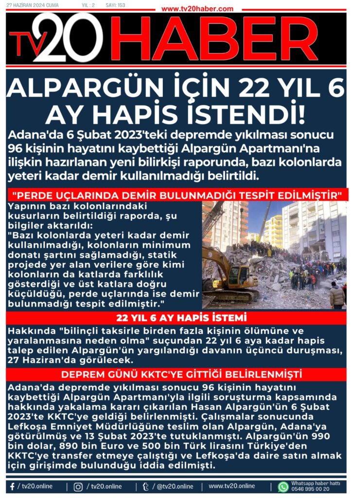 Adana’da depremde yıkılması sonucu 96 kişinin hayatını kaybettiği Alpargün Apartmanı’yla ilgili soruşturma kapsamında hakkında yakalama kararı çıkarılan Hasan Alpargün’ün 6 Şubat 2023’te KKTC’ye geldiği belirlenmişti. Çalışmalar sonucunda Lefkoşa Emniyet Müdürlüğüne teslim olan Alpargün, Adana’ya götürülmüş ve 13 Şubat 2023’te tutuklanmıştı. Alpargün’ün 990 bin dolar, 890 bin Euro ve 500 bin Türk lirasını Türkiye’den KKTC’ye transfer etmeye çalıştığı ve Lefkoşa’da daire satın almak için girişimde bulunduğu iddia edilmişti.