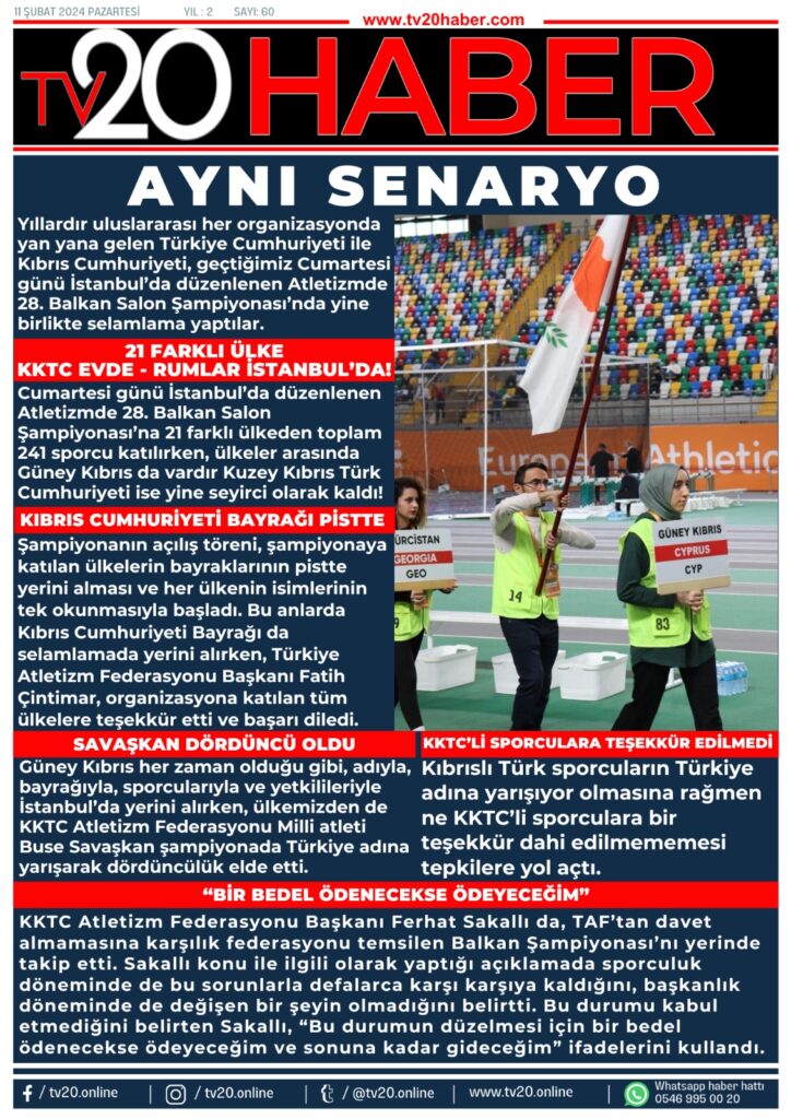 Cumartesi günü İstanbul’da düzenlenen Atletizmde 28. Balkan Salon Şampiyonası’na 21 farklı ülkeden toplam 241 sporcu katılırken, ülkeler arasında Güney Kıbrıs da vardır Kuzey Kıbrıs Türk Cumhuriyeti ise yine seyirci olarak kaldı!