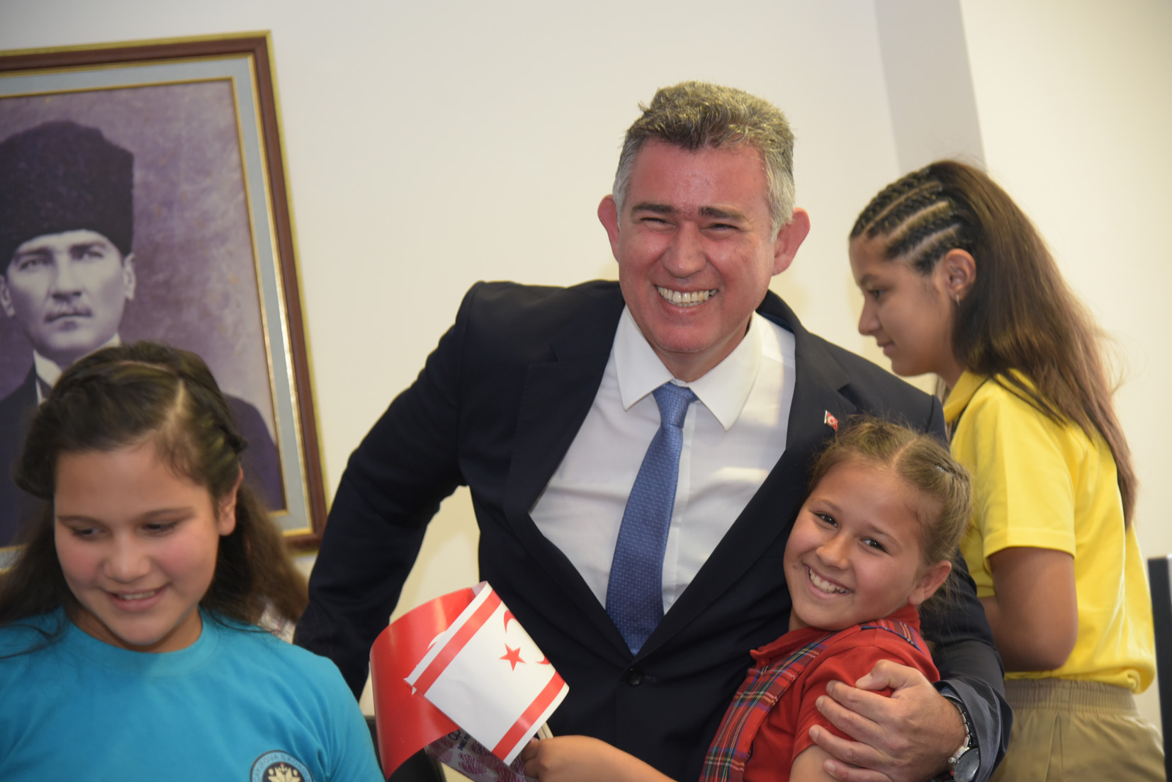 TC Lefkoşa Büyükelçisi Metin Feyzioğlu, 23 Nisan Ulusal Egemenlik ve Çocuk Bayramı nedeniyle devlet ve hükümet yetkililerini ziyaret eden ilkokul öğrencilerini kabul etti.