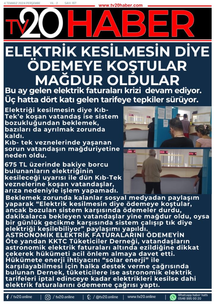 675 TL üzerinde bakiye borcu bulunanların elektriğinin kesileceği uyarısı ile dün Kıb-Tek veznelerine koşan vatandaşlar, arıza nedeniyle işlem yapamadı. Beklemek zorunda kalanlar sosyal medyadan paylaşım yaparak “Elektrik kesilmesin diye ödemeye koştular, ancak bozulan sistem karşısında ödemeler durdu, dakikalarca bekleyen vatandaşlar yine mağdur oldu, oysa bir günlük gecikme karşısında sistem çalışıp tık diye elektriği kesilebiliyor” paylaşımı yapıldı.