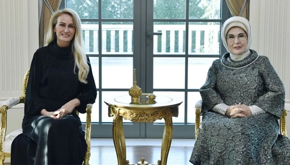 Emine Erdoğan, Cumhurbaşkanı seçildikten sonra ilk resmi ziyaretini Türkiye’ye gerçekleştiren Cumhurbaşkanı Tufan Erhürman‘a eşlik eden eşi Nilden Bektaş Erhürman’ı, Cumhurbaşkanlığı Külliyesi’ndeki Devlet Konukevi’nde ağırladı.