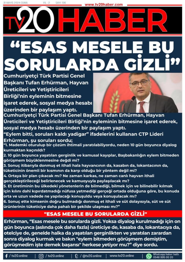“Eylem bitti, soruları kaldı yadigar” ifadelerini kullanan CTP Lideri Erhürman, şu soruları sordu;