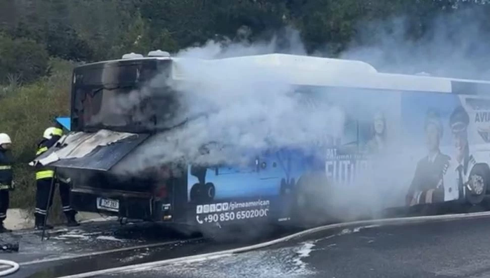 GİRNE YOLUNDA OTOBÜS YANGINI