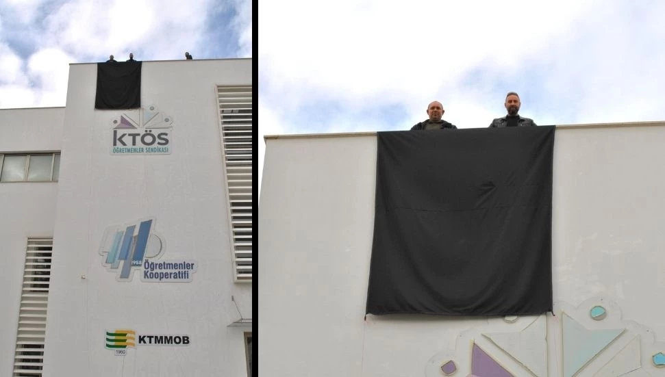 Kıbrıs Türk Mühendis ve Mimar Odaları Birliği (KTMMOB), Kıbrıs Türk Öğretmenler Sendikası (KTÖS) ile birlikte, hükümeti protesto etmek amacıyla KTMMOB ofisinin de yer aldığı KTÖS binasına siyah bayrak astı.