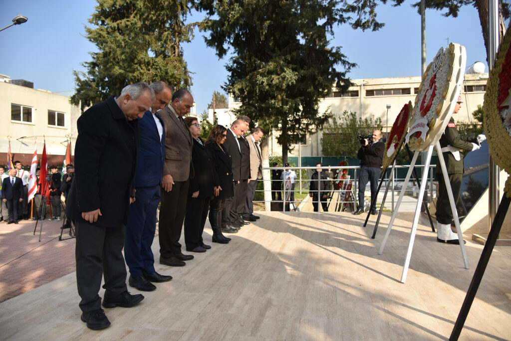 Çelenklerin protokol sırasına göre şehitler anıtına sunulmasıyla başlayan tören, saygı duruşu, saygı atışı ve İstiklal Marşı ile bayrakların göndere çekilmesiyle devam etti. Tören, öğrencilerin şiir okumasının ardından, Cumhurbaşkanı Ersin Tatar’ın yaptığı konuşmayla son erdi.