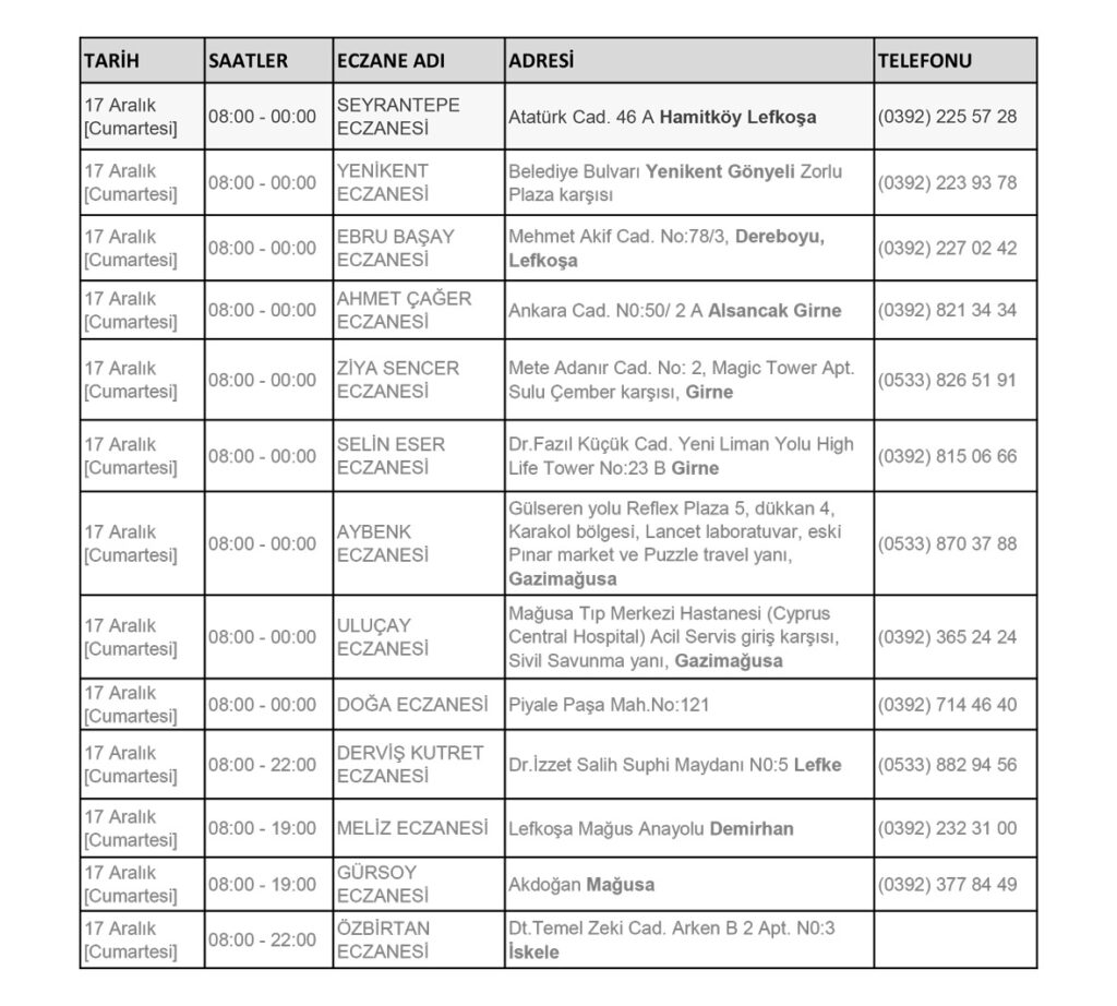 Tags: kıbrısKKTCLefkoşaNöbetçi EczalersağlıkTürkiye