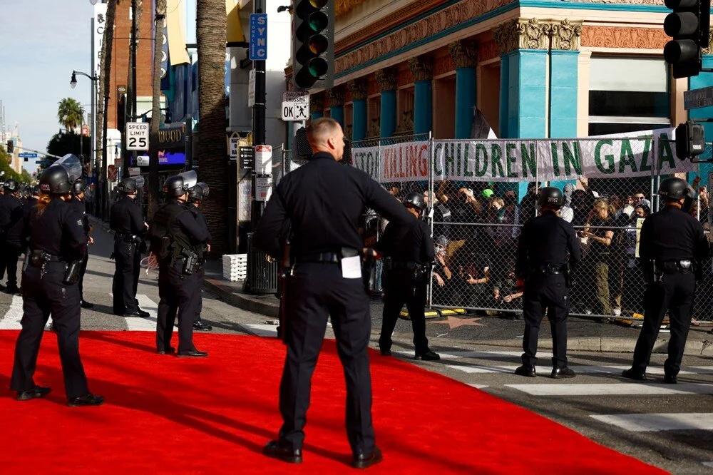 Törenin gerçekleştirildiği Dolby Theatre önündeki gösteri sebebiyle trafik dururken, polis çevrede güvenlik önlemleri aldı.