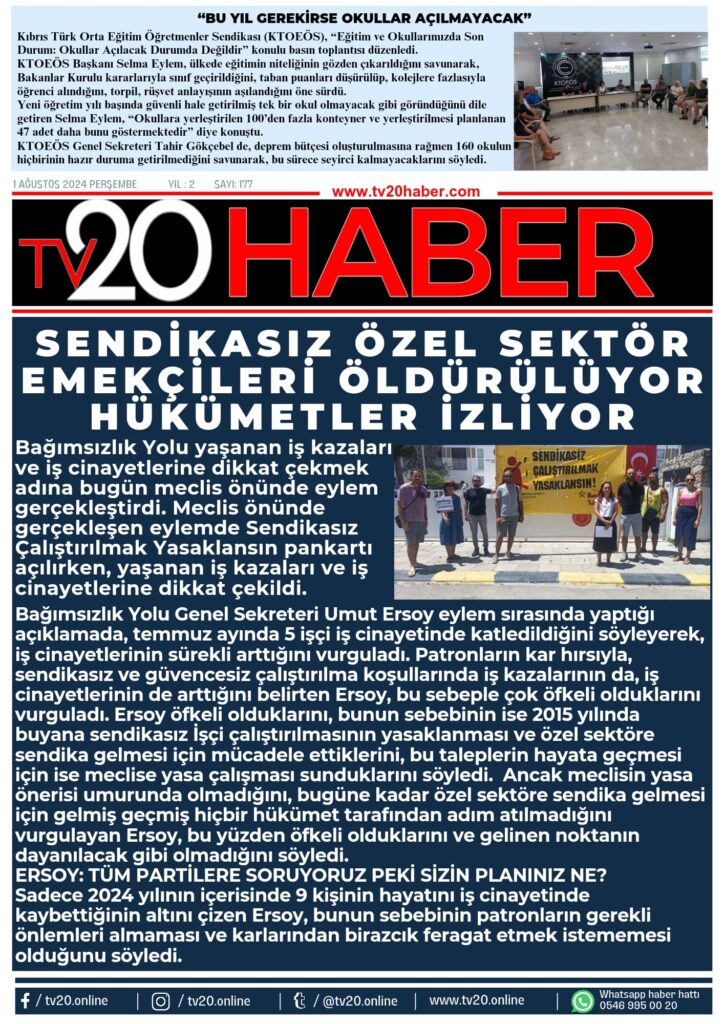 Siz tatildeyken, patronlar ise kendi örgütlerinde kendi sınıflarının çıkarı için örgütlü bir şekilde hareket ederken, sorunlarının çözümü için mücadele edebilecekleri bir sendikal örgütleri olmayan emekçiler sessiz sessiz öldürülüyor!