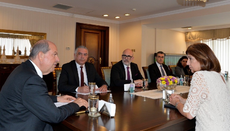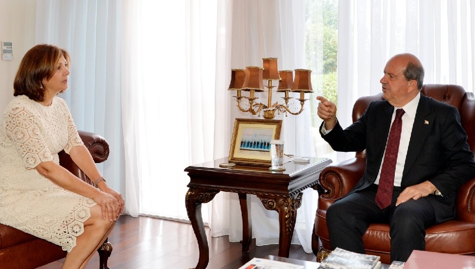 Cumhurbaşkanı Ersin Tatar, Birleşmiş Milletler Genel Sekreteri’nin Kıbrıs Kişisel Temsilcisi María Ángela Holguin Cuéllar’ı kabul etti.