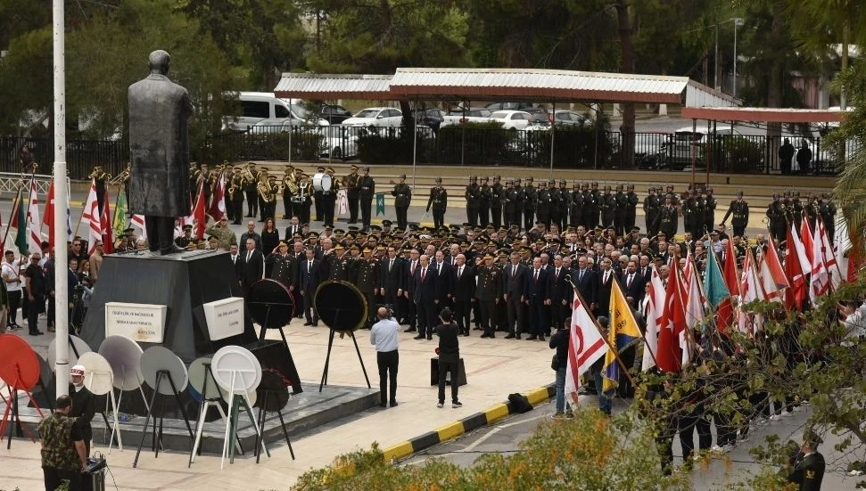 Lefkoşa’daki tören Atatürk Anıtı önünde yapıldı. Törene Cumhurbaşkanı Ersin Tatar, Cumhuriyet Meclisi Başkanı Ziya Öztürkler, Yüksek Mahkeme Başkanı Bertan Özerdağ, 2.Cumhurbaşkanı Mehmet Ali Talat, TC Lefkoşa Büyükelçisi Yasin Ekrem Serim, KTBK Komutanı Tümgeneral Sebahattin Kılınç, GKK Komutanı Tümgeneral İlker Görgülü, Ana Muhalefet CTP Genel Başkanı Tufan Erhürman, bazı bakanlar, milletvekilleri, kurum, kuruluş, dernek temsilcileri, askeri erkan ve öğrenciler katıldı.