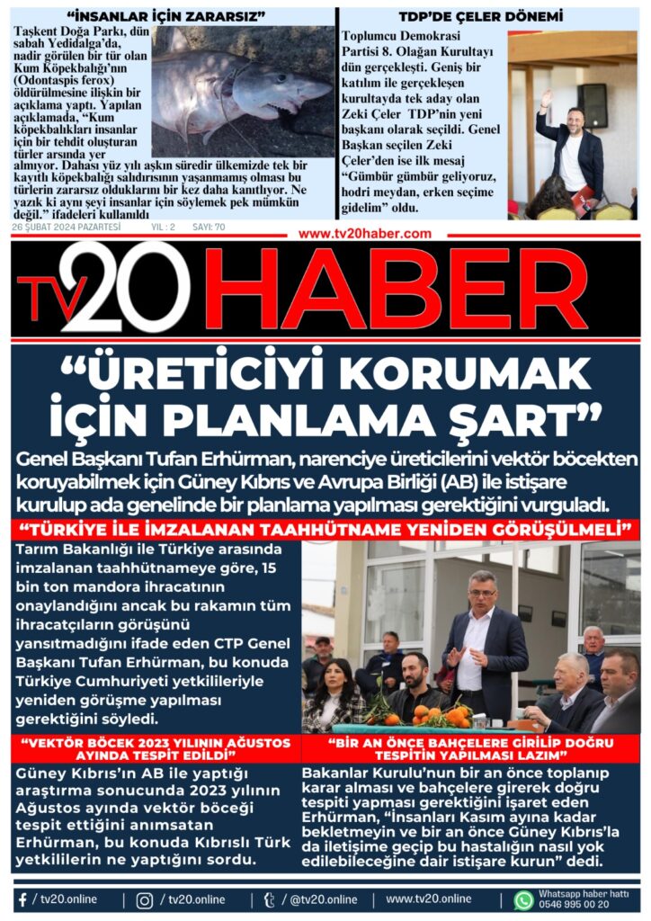 Genel Başkanı Tufan Erhürman, narenciye üreticilerini vektör böcekten koruyabilmek için Güney Kıbrıs ve Avrupa Birliği (AB) ile istişare kurulup ada genelinde bir planlama yapılması gerektiğini vurguladı.