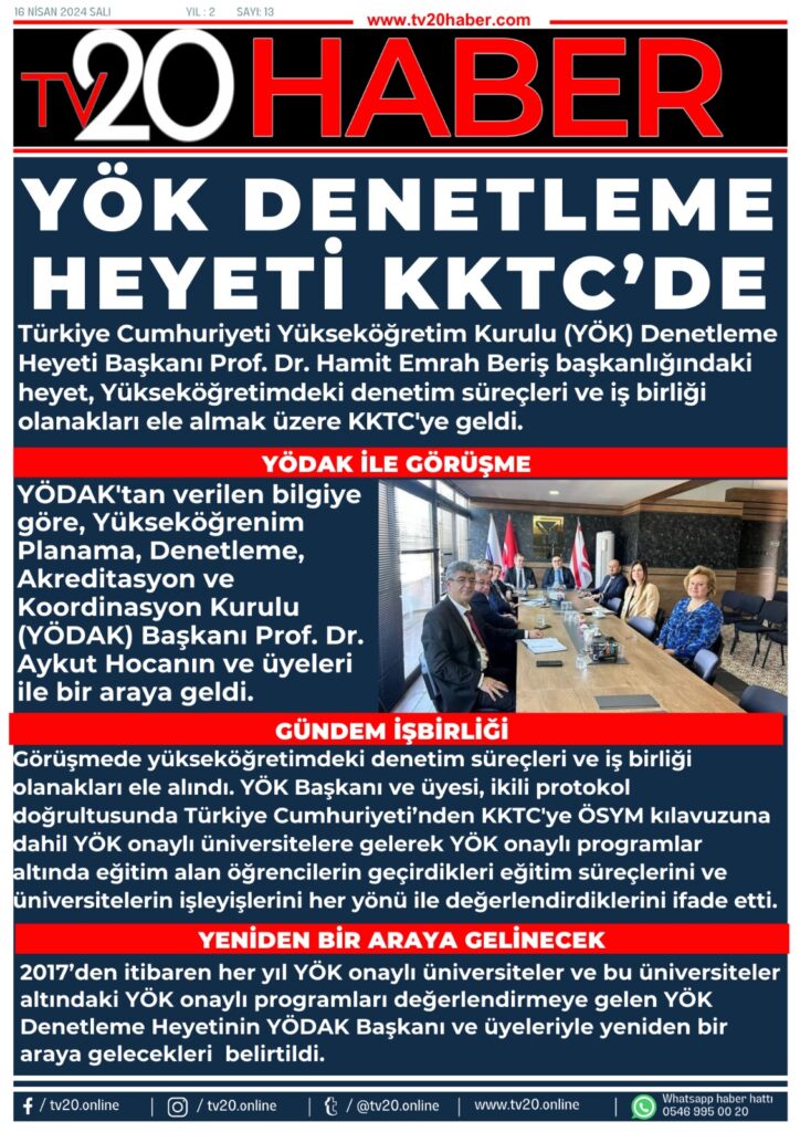 Türkiye Cumhuriyeti Yükseköğretim Kurulu (YÖK) Denetleme Heyeti Başkanı Prof. Dr. Hamit Emrah Beriş başkanlığındaki heyet, Yükseköğretimdeki denetim süreçleri ve iş birliği olanakları ele almak üzere KKTC’ye geldi.
